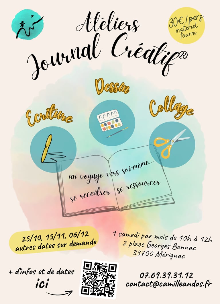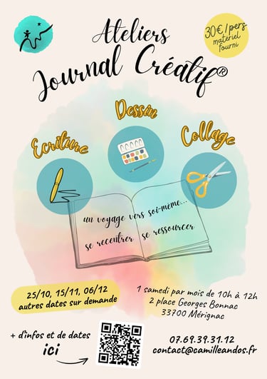 Trois langages, écriture, dessin et collage, soit le langage des mots, des formes, lignes, couleurs, images et symboles. Autant de voies pour s'exprimer et se reconnecter à soi-même, et surtout avec les parts de soi que l'on laisse de côté dans nos vies trépidantes! Un voyage vers soi, un processus de recentrage qui nous mène vers une bulle de sérénité pour libérer les tensions, se recentrer, et faire le plein d'énergie créative!